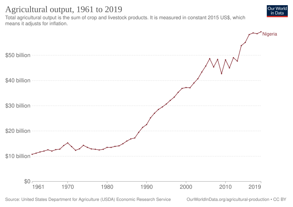 Climate change has also been a major driver of food insecurity in Nigeria, where changing weather patterns, extreme weather events, and environmental degradation have affected crop yields, destroyed harvests, and disrupted food production.⁶ The fact that climate change has made weather patterns more unpredictable, that extreme weather events have become more frequent and more severe, and that environmental degradation has reduced the productivity of agricultural land, has created conditions where agriculture is increasingly vulnerable and where food production is at risk. The challenge is that addressing the impact of climate change on food security requires not only adapting agriculture to changing conditions but also addressing the underlying causes of climate change and building resilience to future shocks.