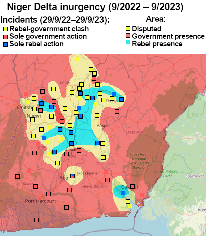 Ebonyi State has experienced attacks across multiple local government areas, with at least 15 police stations attacked between 2021 and 2023. Multiple security personnel were killed, including police officers and soldiers, creating a situation where security forces were unable to maintain effective operations. Local government secretariats and other government facilities were attacked and destroyed, undermining the state's ability to provide basic services and maintain administrative control. Several community leaders were assassinated, creating fear and uncertainty and making it difficult to maintain social cohesion and community leadership.